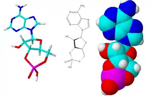 Циклический аденозинмонофосфат (циклический AMФ, 3'5'-цAMФ, 3'5'-cAMP) — органическое соединение, производное АТФ, выполняющее в организме роль вторичного посредника, использующегося для внутриклеточного распространения сигналов некоторых гормонов (например, глюкагона или адреналина), которые не могут проходить через клеточную мембрану.