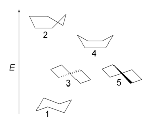 1 — «кресло»; 3, 5 — «твист»-конформации; 4 — «ванна»; 2 — «полукресло», или «конверт»