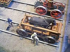 Особенностью устройства циклопеда было использование в качестве двигателя не парового двигателя, а конного привода, использовавшего коня, которого ставили на бегущую дорожку на платформе локомотива, которая через трансмиссию передавала вращательное движение колёсам. Есть утверждение, что на Циклопедe Брандрета использовался не один конь, как обычно изображено на рисунках, а две лошади. Причём для каждой лошади была своя отдельная беговая дорожка.