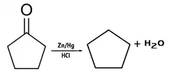 - Основной способ - восстановление циклопентанона амальгамой цинка: