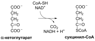 | 2 α-кетоглутарат → 2 сукцинил-КоА | 2 НАДН | 5 |
