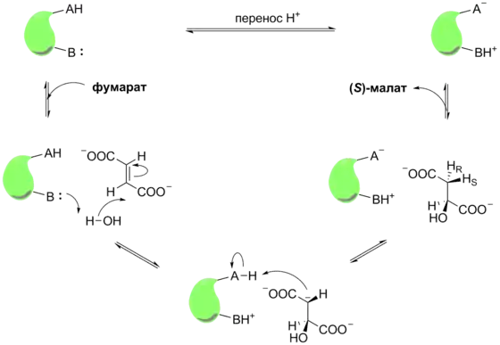 Более детально механизм фумаразной реакции представлен ниже: