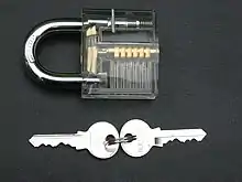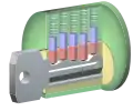 Наиболее распространён штифтовый цилиндровый замок. В нём через цилиндр и корпус проходит ряд подпружиненных штифтов. Каждый штифт разделён на две части различной длины. Когда ключ в замок не вставлен или вставлен чужой ключ, штифты препятствуют повороту цилиндра. Когда в замок вставлен «свой» ключ, торцы половинок штифтов находятся точно на границе между цилиндром и корпусом, в результате цилиндр легко поворачивается.