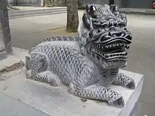 Впервые упоминание о нём мы находим у Конфуция, а его каменные изображения появляются в период Поздняя Хань. В источниках того времени цилинь описывается как животное напоминающее оленя (вола) с одним рогом, заканчивающимся мягкой шишкой, с коровьим хвостом и лошадиными копытами, выше 3 метров ростом. Передвигаясь, оно не причиняло вреда даже букашке. Более того, ступая по траве, цилинь не приминал её[2]. Он не ест живых тварей, а питается чудесными злаками. По некоторым версиям цилинь может даже ходить по воде и летать. Продолжительность жизни животного согласно мифам около 3 тысяч лет. Высеченный на надгробиях цилинь должен охранять их от злых духов, а также провожать умерших на небеса.