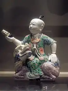 На спине цилиня иногда можно увидеть младенцев мужского пола. Подобно аисту в европейской традиции, это цилинь, по представлениям китайцев, приносит счастливым родителям долгожданного наследника.