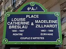 - В честь Луизы Бреслау и Мадлен Циллхардт названа площадь Place Louise-Catherine-Breslau-et-Madeleine-Zillhardt в шестом округе Парижа[3].