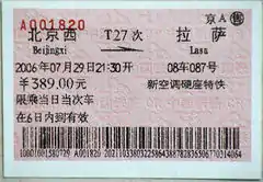 Обычный проездной билет для китайских железных дорог