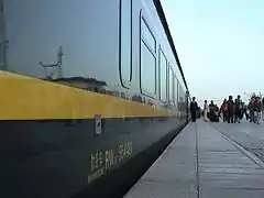 Табличка на вагоне поезда T27/T28 с указанием маршрута следования (Лхаса-Пекин Западный)