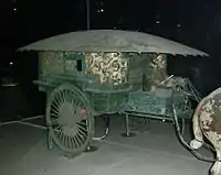 Курган с захоронением первого императора был идентифицирован археологами только в 1974 году. Его исследование продолжается до сих пор, причём место захоронения императора ещё ожидает вскрытия. Курган венчало некое пирамидальное помещение, по которому, по одной из версий, душа покойного должна была подняться на небо[22].