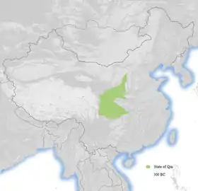 ![]() Циньское царство (красным) в Период Сражающихся царств (260-е годы до н.э.) |