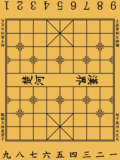Вертикали в ципу нумеруются справа налево для каждого игрока, если смотреть с его стороны. Таким образом, вертикаль 1 чёрных 一 это вертикаль 9 красных, 2 чёрных 一 8 красных, и т. д.