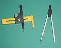- Циркуль пропорциональный — предназначен для масштабирования по образцу, разметки, изготовления копий или моделей в масштабе, для деления отрезков прямой и окружностей на установленное число равных частей и дуг, а также для механического перевода размеров в необходимый масштаб.