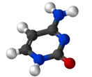 Цитозин, химическая формула C4H5N3O, проявляет основные свойства, реагирует с щелочами и кислотами, реагируя с азотистой кислотой дезаминируется, превращаясь в урацил. Вступает в реакцию фотогидратации с образованием цитозин-гидрата, присоединяя воду под действием ультрафиолетовых лучей.