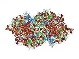 ![]() Структура фотосистемы II из Thermosynechococcus elongatus[1]. | |