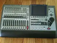 - панель контроллера, включающего микшер, функциональные кнопки и клавиши, органы управления записью/воспроизведением и монтажом, индикаторы;