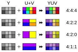 В целях дальнейшего сокращения избыточности сигналов цветности применяются схемы с соотношением 4:2:0 и 4:1:1. В последнем случае горизонтальная чёткость цветоразностных сигналов снижается до четверти от полного разрешения сигнала яркости. Оба варианта 4:1:1 и 4:2:0 вдвое сокращают пропускную способность по сравнению с представлением без субдискретизации.
