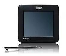 - По мобильности: от чисто студийных, требующих внешнего источника питания, накопителя данных и компьютера для настройки (например, Phase One H5), до мобильных (например, Leaf Aptus II с сенсорным экраном или Leaf Valeo с синхронизацией с компьютером DP-67)[30].