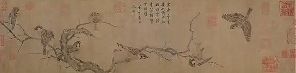 ![]() Цуй Бо «Две сойки, недовольные зайцем». Около 1061г. | |
