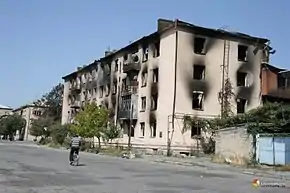 По словам бывшего мэра Цхинвала Роберта Гулиева[59][60], в городе в результате миномётно-артиллерийских обстрелов и действий грузинских войск было повреждено около 80 % зданий[61]. Заместитель министра регионального развития Российской Федерации Владимир Бланк сообщал, что каждое десятое здание в городе не подлежит восстановлению, а 20 % получили повреждения различной степени[62]. На основании данных спутниковой фотосъёмки, полученных в конце августа 2008 года и не сопровождавшихся обследованием на месте, 175 зданий Цхинвали были полностью уничтожены, ещё 55 — разрушены (суммарно, 5 % от общего числа строений)[63].