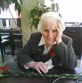 Участница войны, с июня 1943 разведчица в комсомольском отряде партизан Джавского района (Кударгома).