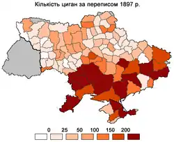 Согласно переписи населения 1926 года в УССР проживало 13 000 цыган (в том числе 2 500 оседло); в Крыму — 1300, на Северном Кавказе — 6800. Всего цыган на украинской территории (по данным на 1926 год) проживало около 20 000 человек.