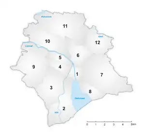 Большинство границ районов совпадает с первоначальными границами муниципалитетов до их присоединения к Цюриху.