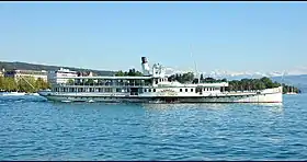 ![]() Колёсный пароход Stadt Zürich на озере | |