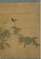 - 29 Две птицы на цветущей ветке. Тушь и краски на бумаге. Поэма, подпись автора и две его печати. Возможно имитация. Собрание Ябумото Коцзо, Амагасаки