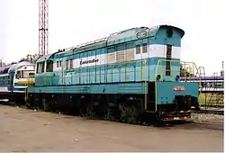 ЧМЭ3Э в корпоративной окраске ОАО «РЖД» (вид на малый капот)