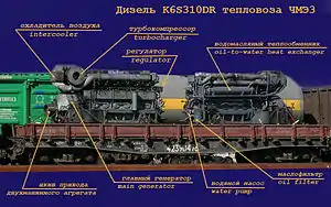 Был доработан дизель: мощность увеличена с 750 л. с. на ЧМЭ2 (модель 6S310-DR) до 1350 л. с. (модель K6S310DR).