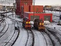 ![]() ![]() Тепловозы в окраске, близкой к заводской: ЧМЭ3-4960 со стороны малого капота (вверху); ЧМЭ3-1228 со стороны большого капота | |
