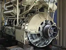 Дизель рядный шестицилиндровый рабочим объёмом 163 л, с турбонаддувом и промежуточным охлаждением наддувочного воздуха. Мощность при номинальных оборотах 750 мин−1 — 1350 лс, частота вращения на холостом ходу — 350 мин−1. Поршень выполнен с камерой сгорания, его диаметр — 310 мм, ход — 360 мм, масса — 42 кг. На каждый цилиндр приходятся четыре клапана верхнего расположения и одна форсунка, привод клапанов — через роликовые толкатели. На дизеле установлены три насоса, шестерённый масляный и два водяных, первый работает в основном контуре охлаждения, вода которого омывает блок цилиндров, а второй во вспомогательном контуре, вода которого охлаждает водомасляный теплообменник, в котором охлаждается масло дизеля, и охладитель наддувочного воздуха.