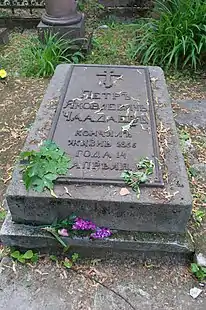 Пётр Я́ковлевич Чаада́ев[1] (27 мая [7 июня] 1794, Москва — 14 [26] апреля 1856, там же) — русский философ (по собственной оценке — «христианский философ») и публицист, объявленный правительством сумасшедшим за свои сочинения, в которых резко критиковал действительность русской жизни. Его труды были запрещены к публикации в императорской России.
