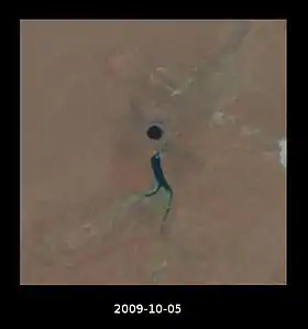В начале 1965 года русло реки Чаганки соединили с образовавшейся воронкой каналом. Позднее здесь была построена каменно-земляная плотина с водопропускными сооружениями.