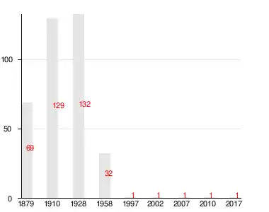 Число жителей по семейным спискам 1879 г.: 42 м. п., 27 ж. п.; по приходским сведениям 1879 г.: 33 м. п., 27 ж. п[2].