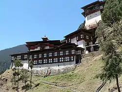 Монастырь, который сейчас является главным центром отшельничества и обучения для южной ветви Друкпа Кагью, размещается на севере долины Тхимпху примерно в 15 километрах от столицы. Он стоит на крутом холме над дорогою и требуется немало времени, чтобы подняться на вершину и достичь самого монастыря.