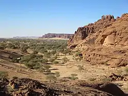 Ландшафт северной, сахарской части страны — каменистые пустыни, почти лишённые растительности, чередуются с песчаными пустынями, имеющими скудную растительность (тамарикс, низкорослые акации, верблюжья колючка). В оазисах — финиковые пальмы, выращивают виноград и пшеницу. Южнее, в зоне сахеля, полупустыни и опустыненные саванны с разреженным травяным покровом и зарослями колючих кустарников (в основном, акаций), встречаются пальмы дум и баобабы. На крайнем юге — типичные саванны с высоким злаковым покровом и леса. В поймах рек и по берегам озёр — обширные травяные болота.
