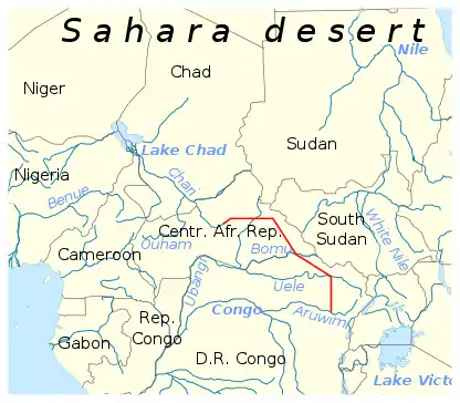В 1893—1894 годах озеро Чад было разграничено в отношении сферы влияний между Англией, Францией и Германией: западный берег между Барруа до Мбулу отошёл к английской сфере влияния, южный берег до реки Шари — к германской, а восток и север озера — к французской[11][12].