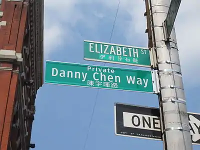 - Berger J.. Chinatown Considers Business Improvement District (англ.), The New York Times (21 September 2011). Дата обращения 22 ноября 2020.