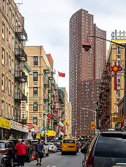 Жилой фонд Чайна-тауна по-прежнему в основном состоит из тесных многоквартирных домов, некоторым из которых более 100 лет. Для таких зданий обычным явлением являются общие ванные комнаты в коридорах. В 1976 году на углу Бауэри и Дивижен-стрит был завершён проект социального жилья под названием Конфьюшес-Плаза. Этот 44-этажный жилой дом предоставил тысячам жителей нейборхуда столь необходимый новый жилой фонд. В здании также разместилась новая школа 124. Помимо того, что здание стало первым и самым большим комплексом доступного жилья, возведённого непосредственно для населения Чайна-тауна, Конфьюшес-Плаза также является культурной и институциональной достопримечательностью, в которой в 1974 году зародилась общественная организация «Азиатские американцы за равенство» (англ. Asian Americans for Equality; AAFE) — одна из старейших политических и общественных организаций нейборхуда.