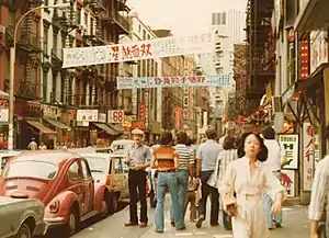 К этому времени многие новые китайские иммигранты селились на Ист-Бродвее вместо исторического ядра Чайна-тауна к западу от Бауэри. Вдобавок кантонский диалект начал вытесняться мандарином. Кроме того, конкуренцию за роль культурного и торгового центра китаеговорящих жителей Нью-Йорка манхэттенскому Чайна-тауну начал создавать вышеупомянутый нейборхуд Флашинг[13].