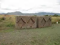Андская чакана встречается сравнительно редко. Как упоминалось, отличается от инкской количеством ступеней. Чаще встречается четыре, как на мегалитах Тиуанако (Боливия). Они показаны слева.