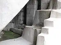 Реже можно увидеть пять ступеней, как например в 40 километрах от Куско в Ольянтайтамбо (Перу). Здесь, в остатках основания здания, по традиции условно названного Храмом Солнца, они полустерты, но все ещё заметны на Стене шести мегалитов из розового порфира не уступающего по твердости граниту.