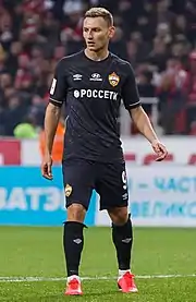 За основную команду ЦСКА дебютировал 21 сентября 2016 года в гостевом матче 1/16 Кубка России против «Енисея» (1:2) — вышел на замену на 76-й минуте. 6 ноября дебютировал в премьер-лиге в матче против пермского «Амкара»[7]. 18 ноября 2016 года впервые вышел в стартовом составе ЦСКА в матче чемпионата против тульского «Арсенала». 22 ноября 2016 дебютировал в Лиге чемпионов в матче против «Байера»[8]. 3 декабря забил свой первый гол в профессиональной карьере в ворота «Урала» (4:0). 12 мая 2017 года в матче против тульского «Арсенала» (3:0) оформил первый дубль в карьере. В конце 2017 года был назван лучшим молодым футболистом России и стал обладателем почётной премии «Первая пятёрка».