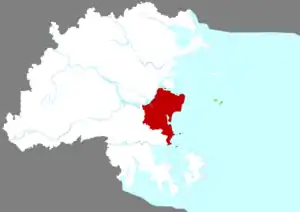 Район делится на 4 уличных комитета, 12 посёлков и 2 волости.
