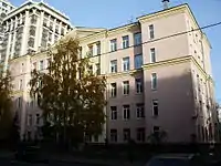 - № 6, стр.2 — Школа № 1249 с углублённым изучением немецкого языка. Здание было построено в 1930 году по проекту архитекторов М. И. Мотылёва и А. И. Палехова. Асимметричный фасад характерен для школьных зданий того времени[21]. Тогда в этом здании разместилась первая ударная школа, которая в 1936 году получила номер 144. 16 октября 1941 года в здании школы из добровольцев была сформирована 3-я Московская коммунистическая стрелковая дивизия. В феврале 1942 года, после того как дивизию направили на фронт, в здании школы разместился госпиталь для раненых. В 1944 году в здании была открыта первая школа ВВС, просуществовавшая до 1955 года. Среди её выпускников был лётчик-космонавт В. М. Комаров, о чём свидетельствует мемориальная доска на фасаде здания. С 1955 года в здании размещается школа с углублённым изучением немецкого языка[20]. Школа имеет статус объекта культурного наследия регионального значения[22].