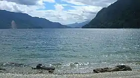Озеро лежит у подножия вулкана Кальбуко, склоны гор, окружающих озеро, покрыты лесом.