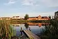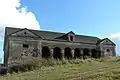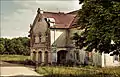 Хозяйственные постройки в Прилуках: пивоварня (справа), дом для работников (в центре) и амбар (слева), фото 2012 года.