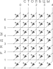 Когда нужно экономить выводы, желательно сделать m и n предельно близкими, в лучшем случае — равными. Без использования строчного дешифратора из 2n выводов можно получить n² светодиодов.