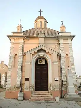Часовня сочетает в себе элементы неоклассицизма и сербско-византийского стиля. Основное пространство в плане квадратное. С востока пристроена апсида, полукруглая внутри и трёхгранная снаружи. На боковых стенах размещены апсиды такой же формы, но меньших размеров[1].
